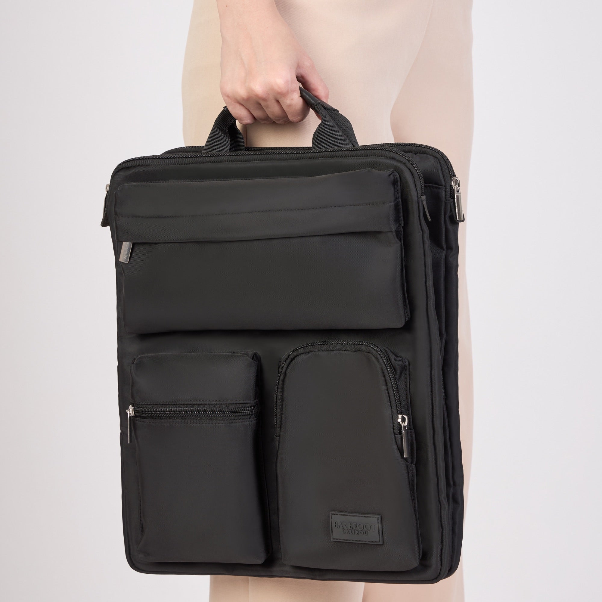 Fitted with strong magnets that transform this luggage organizer into a laptop bag